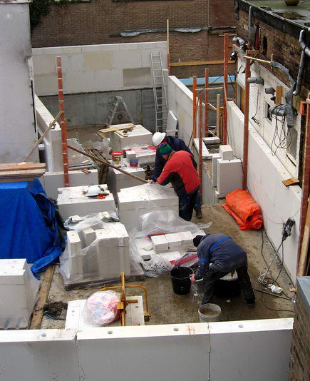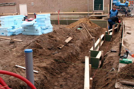 Op woensdag 20 januari 2010 begint het optrekken van de keldermuren.