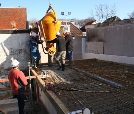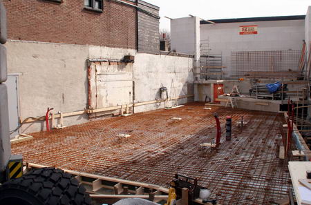 Na het uitzetten en storten van de omkadering volgt het wapenen van de grote vloer. Op 17 maart 2010 is dat klaar en kan het betonstorten beginnen.