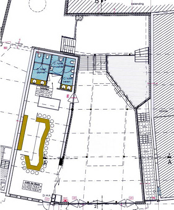 Dit "plein" is multi-functioneel, geschikt voor kleinere evenementen en voorzien van een podium voor (muziek) optredens en voorstellingen. Het café blijft als knusse bruine kroeg behouden en kan eenvoudig van het plein/terras worden afgescheiden.