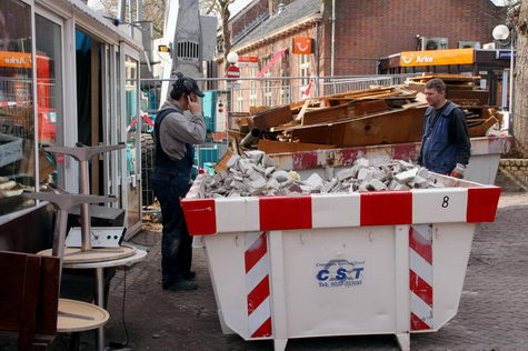Vele containers puin, sloophout en afval verder is De Slock klaar om weer opgebouwd te worden.